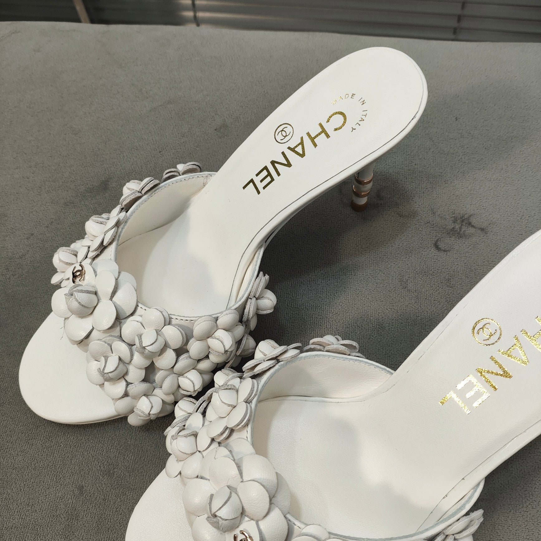 CC MULE WITH SILK WHITE BOW AND BLACK LAMBSKIN
