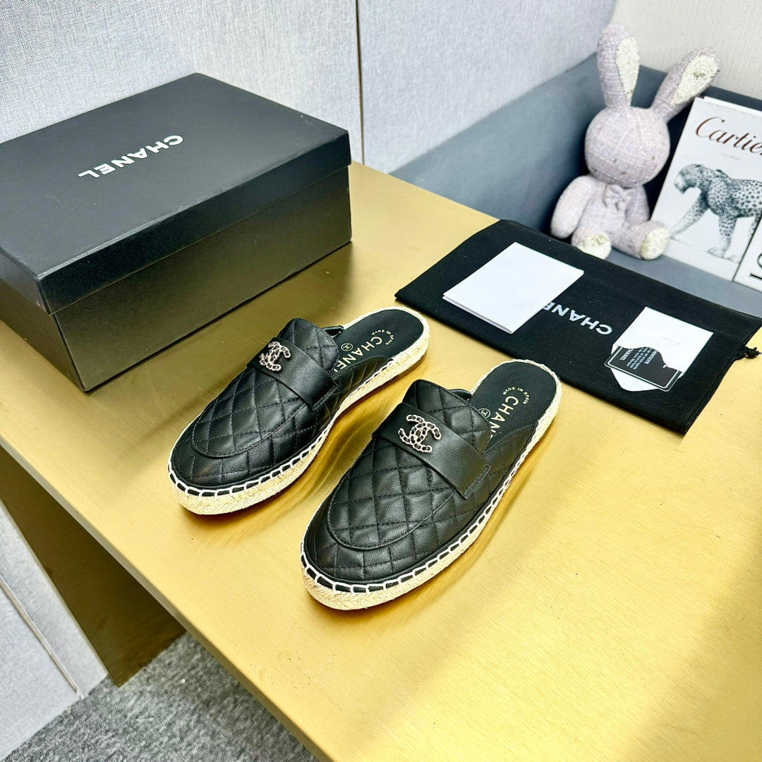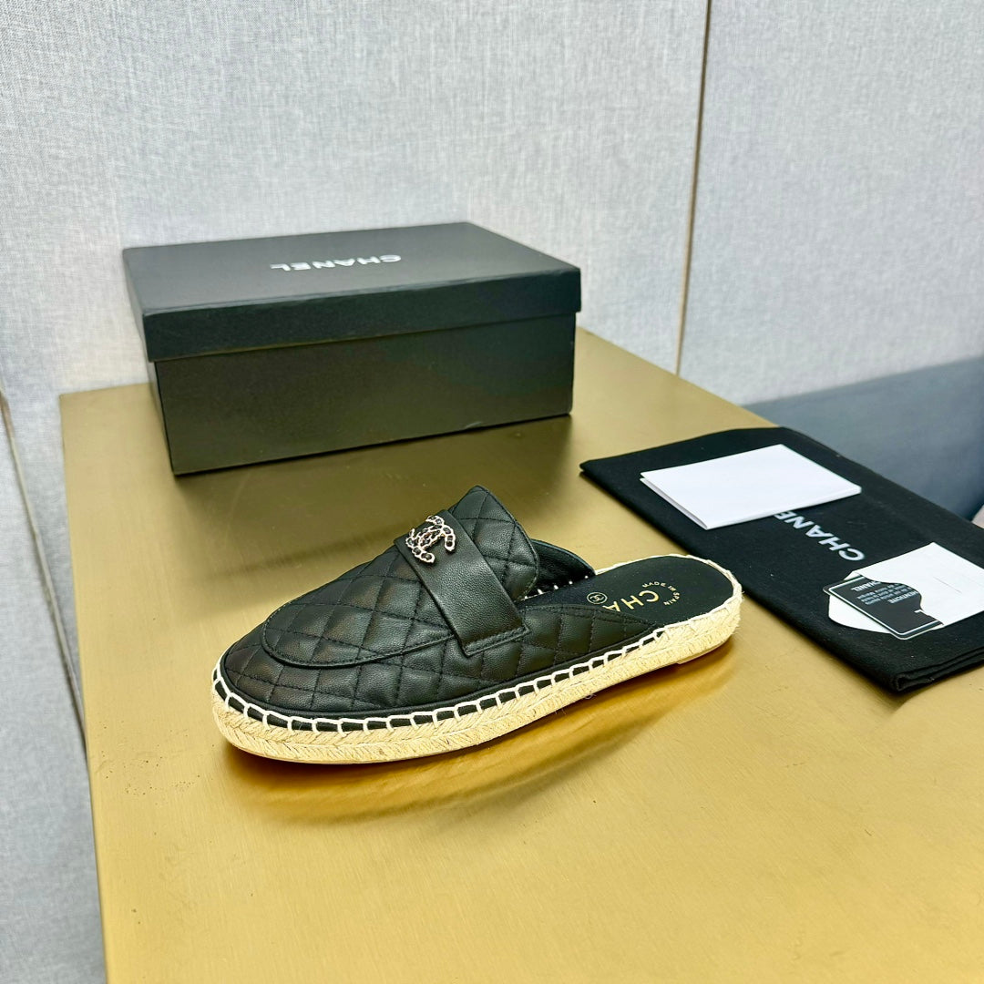 CC FLAT MULE IN BLACK MIX WHITE WOOL TWEED AND CALFSKIN