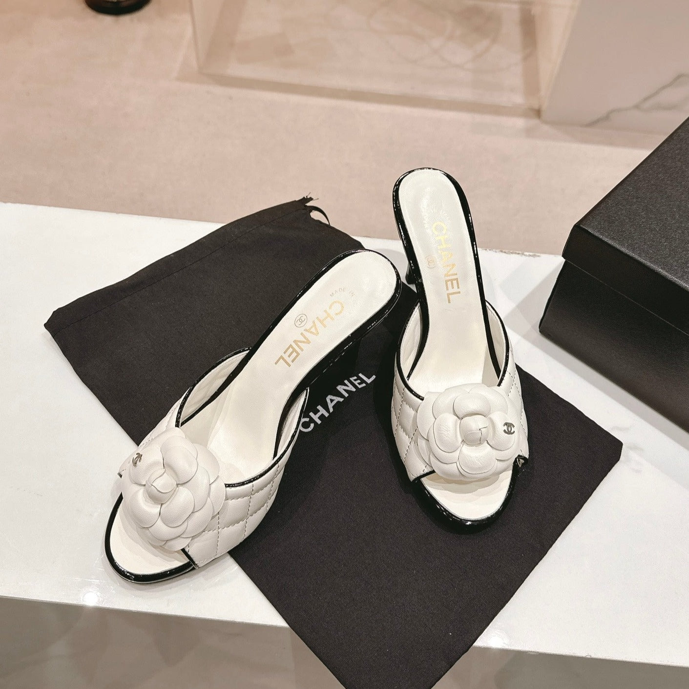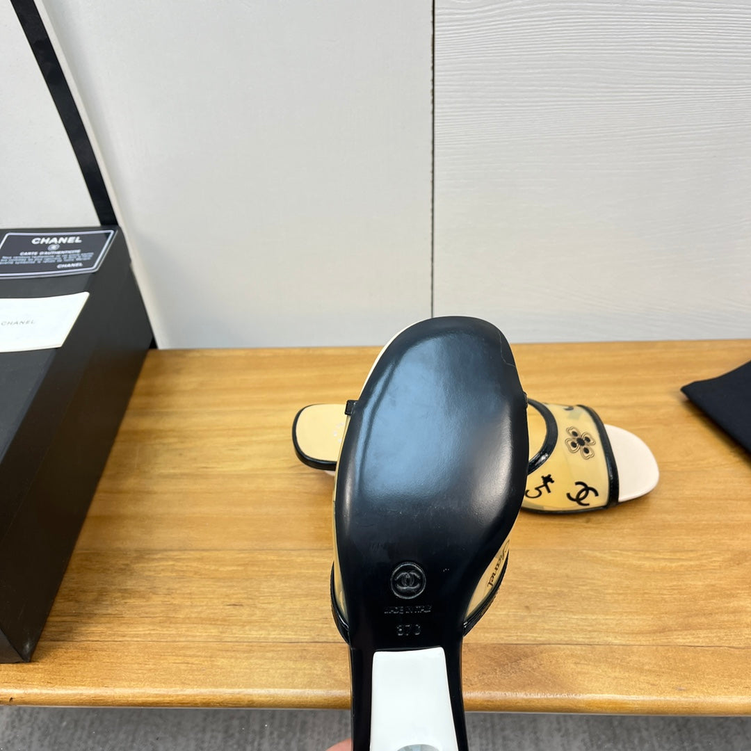 cc sandal flower 85 black white calfskin