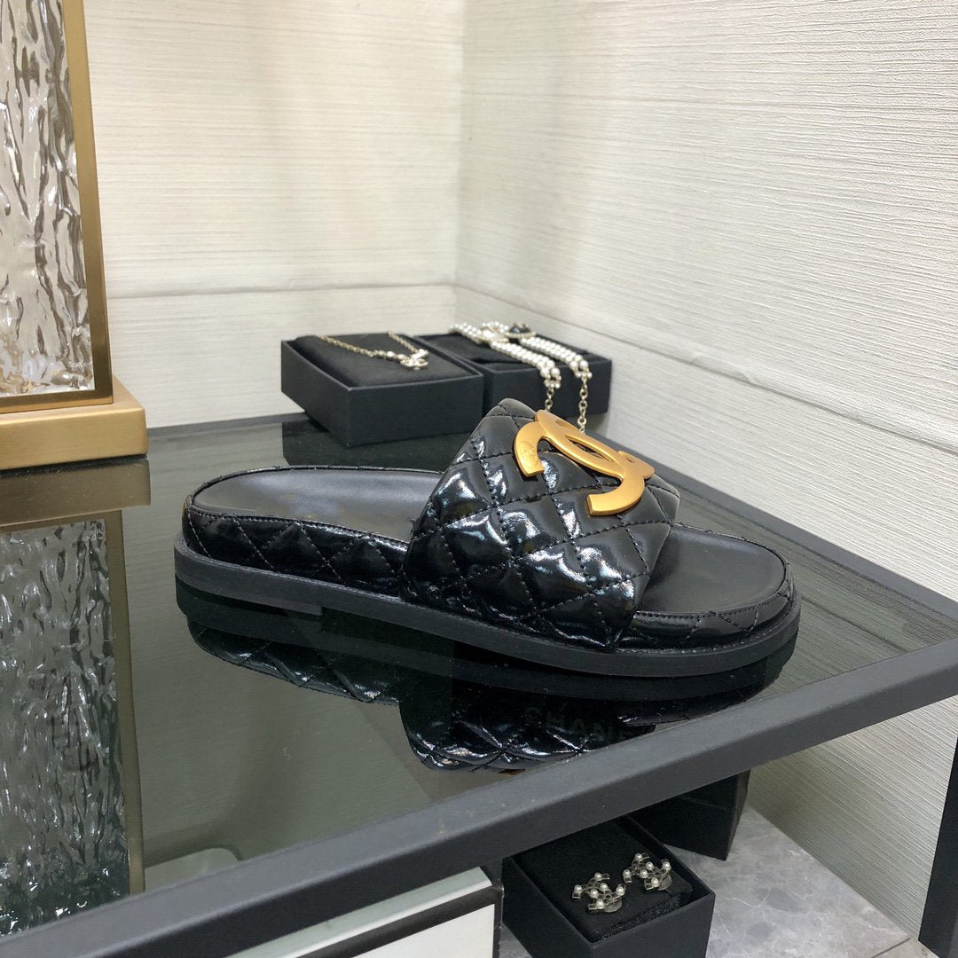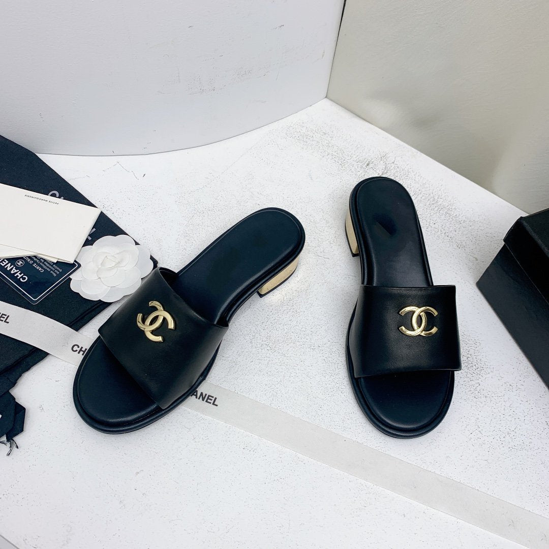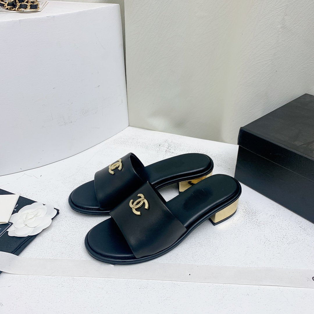 cc rev cone heel mule slide sandal black quilted lambskin 6cm