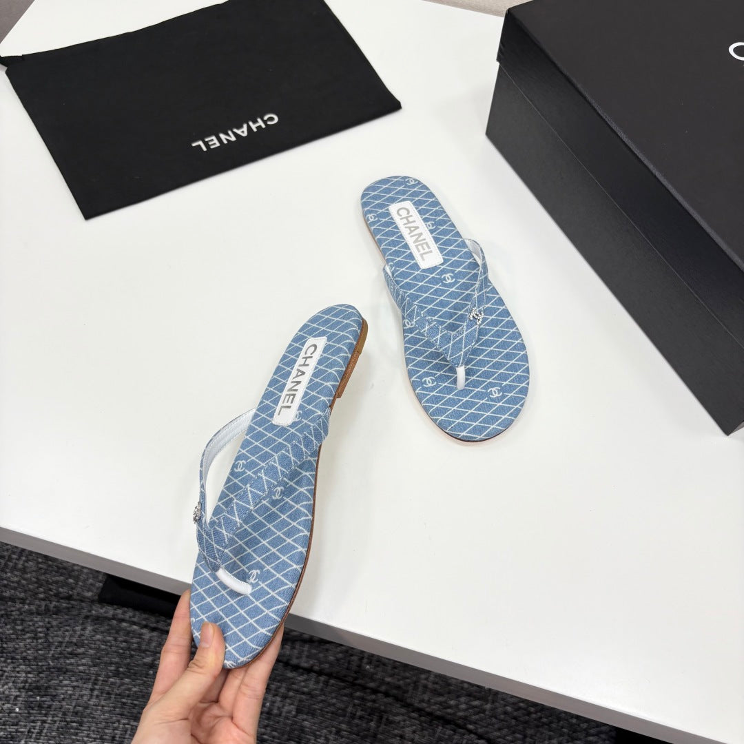 CC 25 Doubble Chain Embroidered Slippers Light Blue Fabric 352497