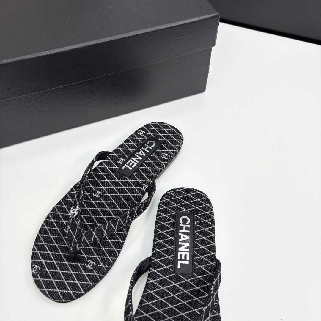 CC 25 Doubble Chain Embroidered Slippers Navy Blue Fabric 352496