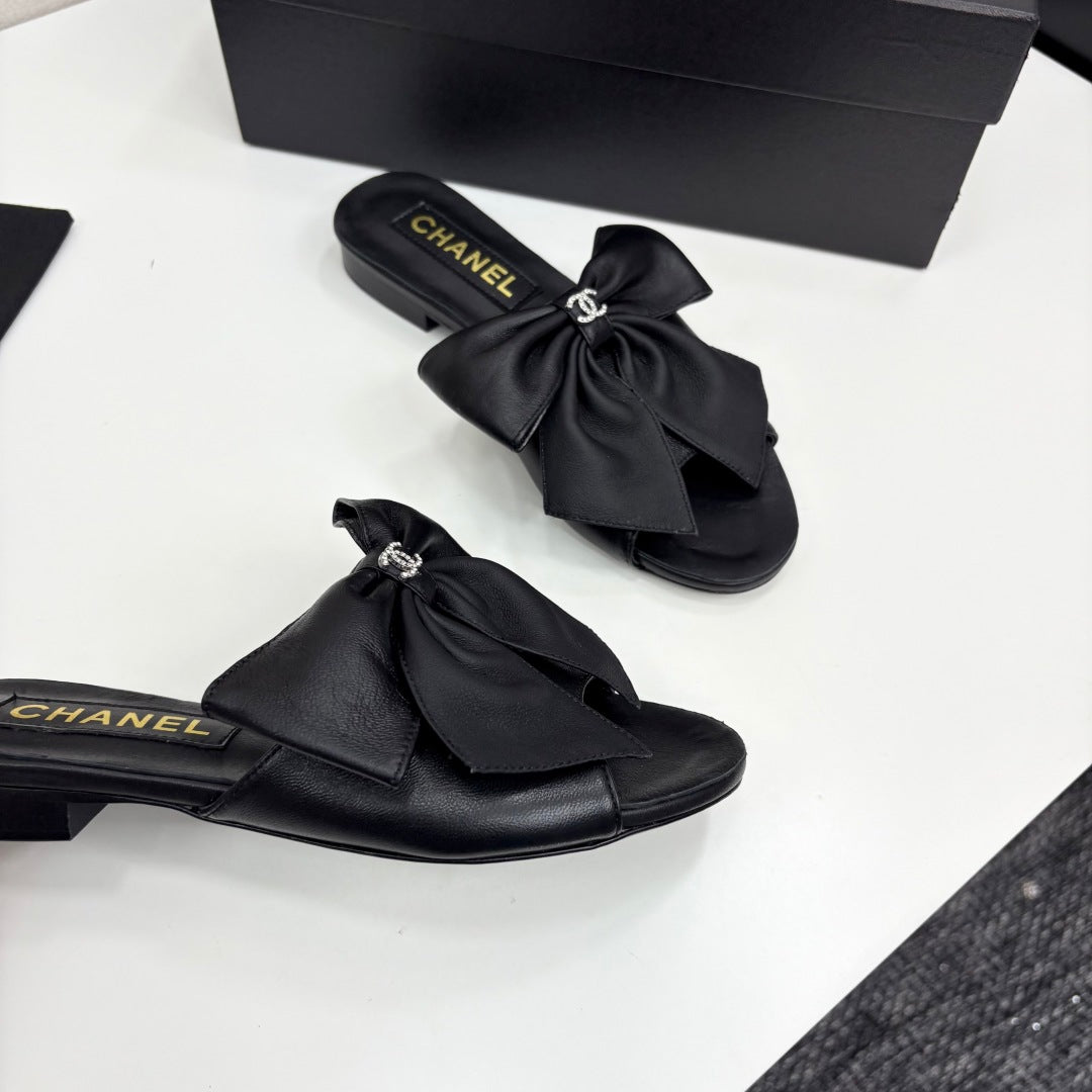 CC 25 Big Bow Mule Black Satin And Sheepskin 368866