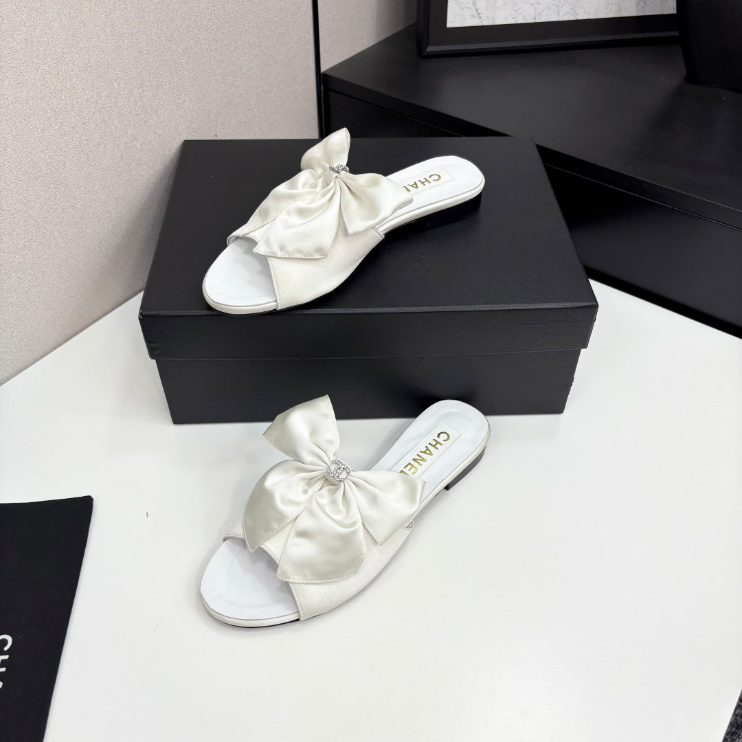 CC 25 Big Bow Mule White Satin And Sheepskin 368865