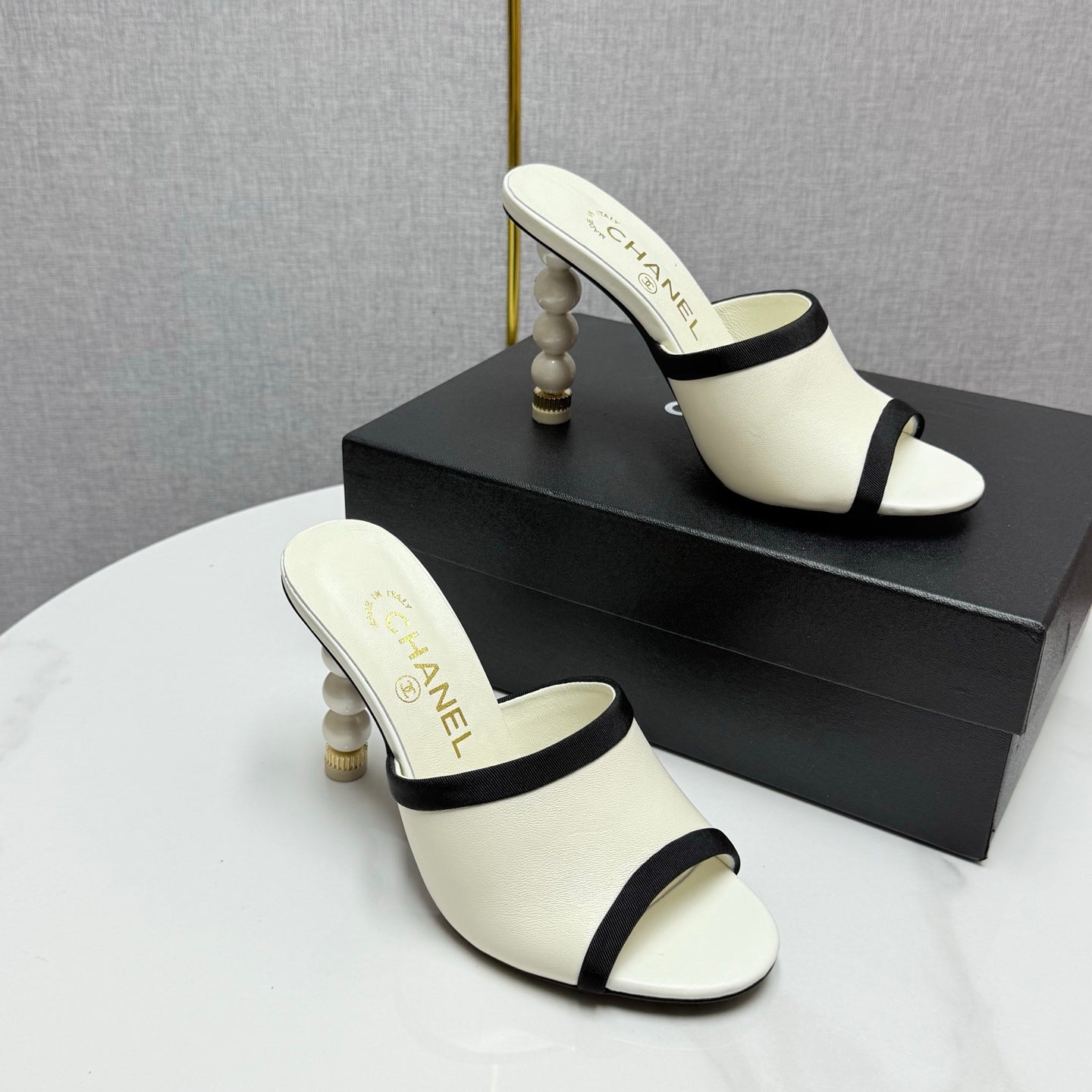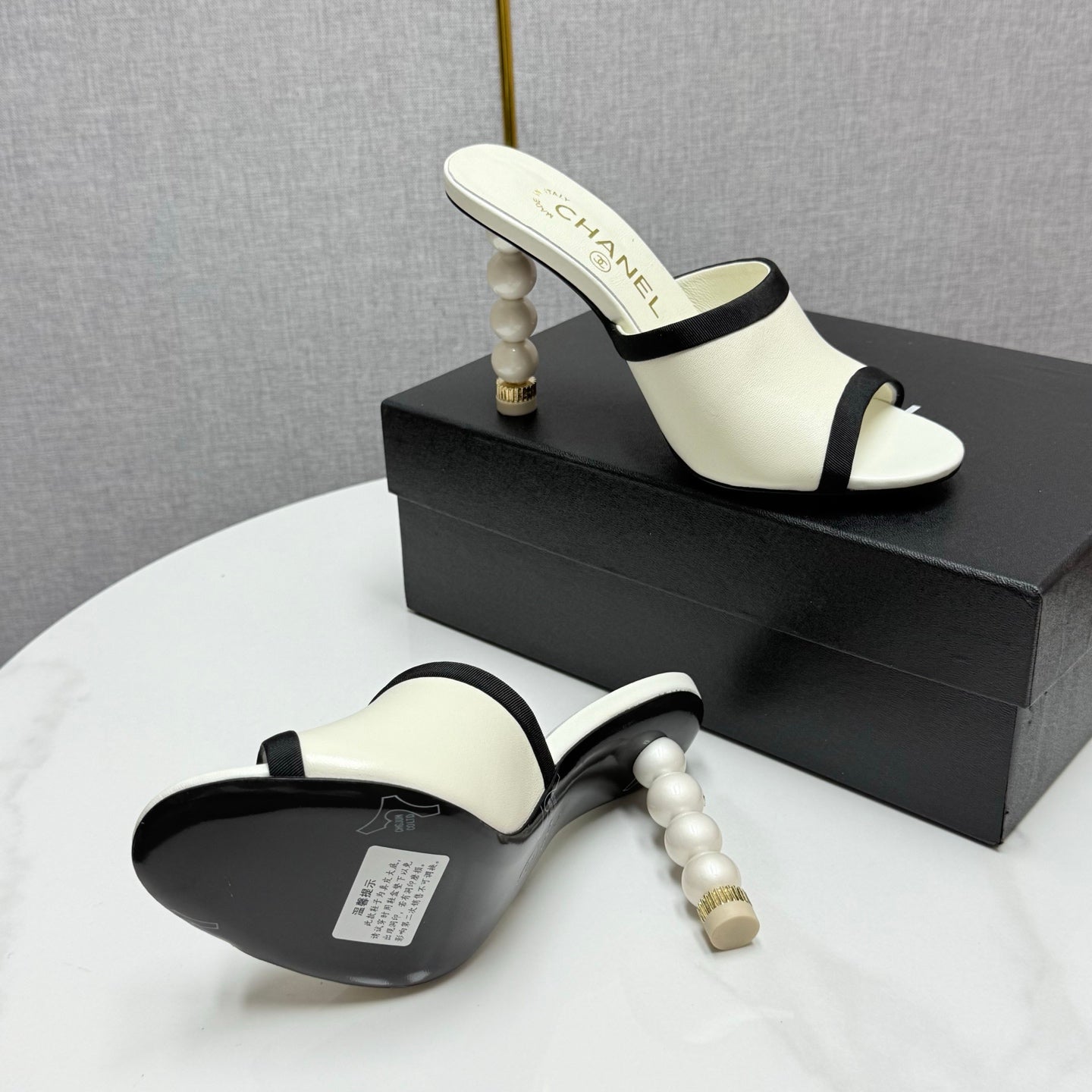 CC 25 High Heel Slippers 85mn White Black Sheepskin 368789