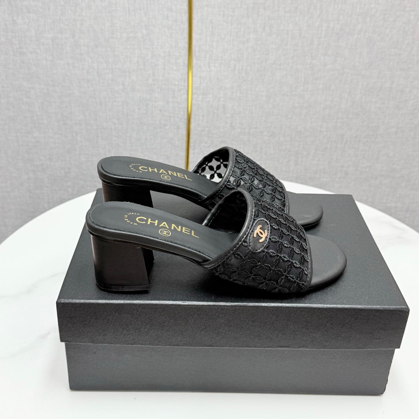 CC 25 Heel Sandals 50m Black Mesh And Sheepskin 368802