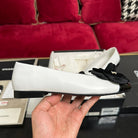 ballet flat black flower white calfskin