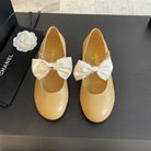 BALLET FLAT DARK CREAM LAMBSKIN WITH WHITE BOW
