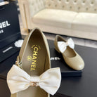 BALLET FLAT EICRU BEIGE LAMBSKIN WITH WHITE BOW