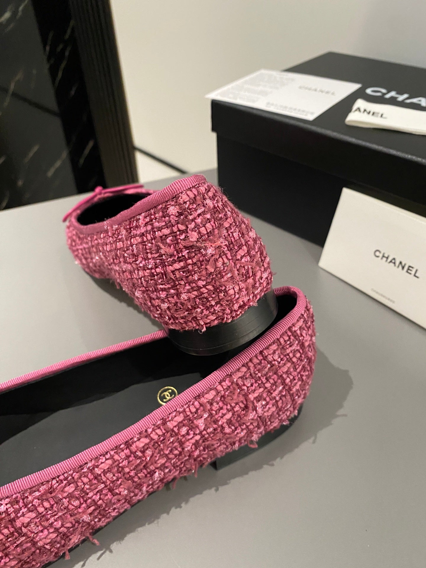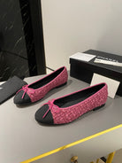 ballet flat red tweed black grosgrain