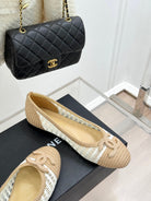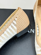 CC 25P Hollow Double C Ballet Flats 15mm Beige White Raffia 265641