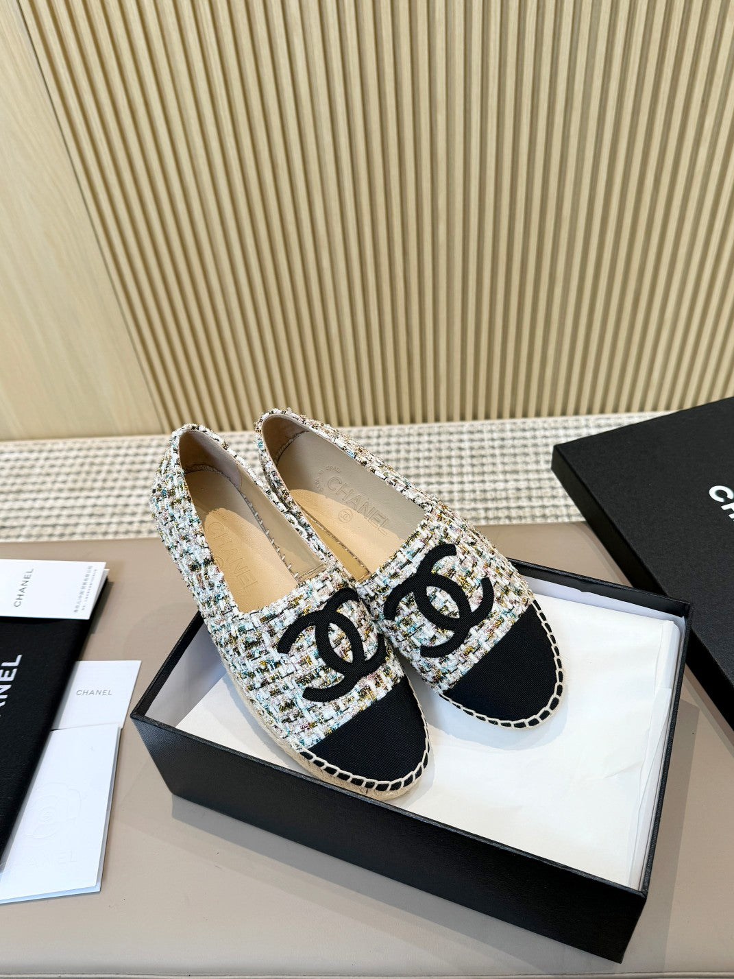 cc espadrilles multicolor tweed black grosgrain