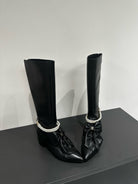 CC High Boots Black Bow Tie Cowhide