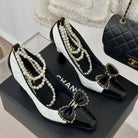 CC High Heels 80mm White Black Bow Quilted Calfskin