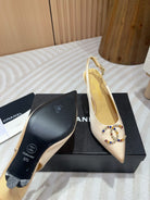 CC HIGH SLINGBACKS BEIGE CREAM SATIN AND LAMBSKIN