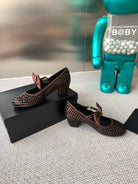 CC MARY JANES SHOES IN UMBER BROWN SATIN WITH RHINESTONES