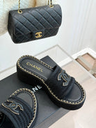 CC Mesh Hollow Chain Double C Thick-Soled Slippers 70mm Black 265651