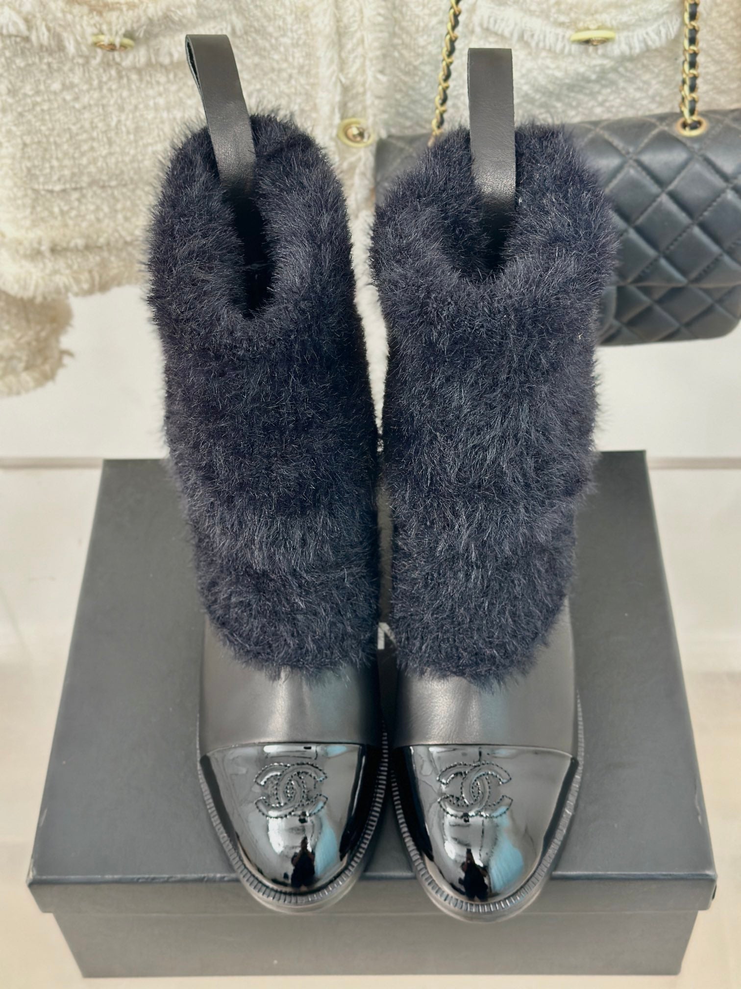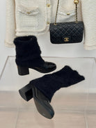CC Short Boots 60mm Black Cowhide And Wool Yarn