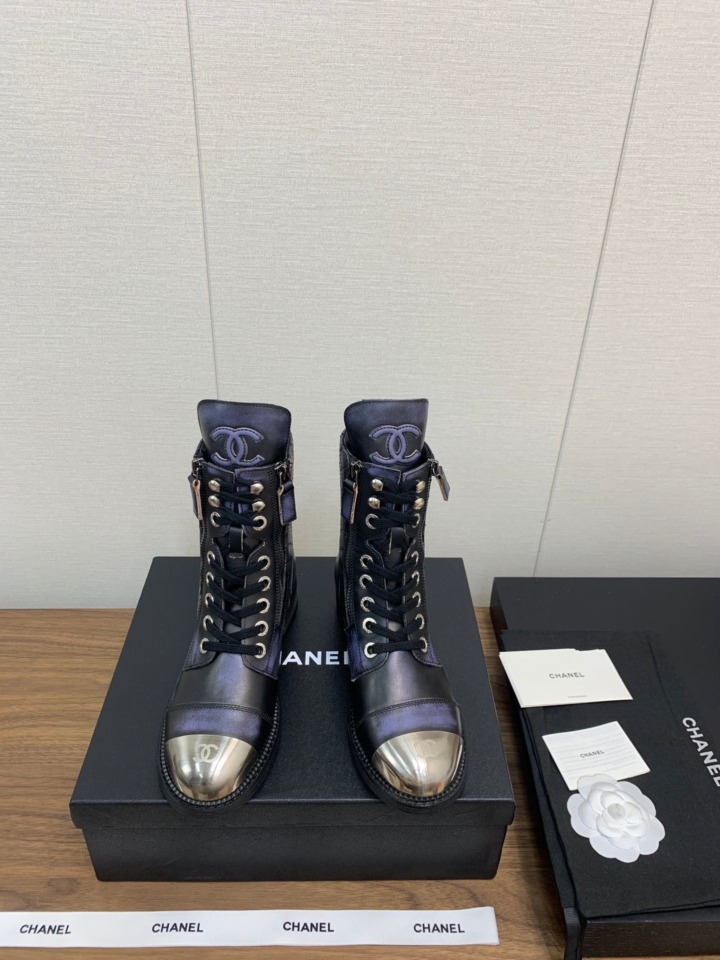 CC Short Boots Purple Black Yellow Cowhide