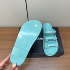 dad sandals sky blue triple strap lambskin mules