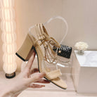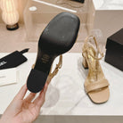 Double C Leather High Heel Sandals Beige Cream