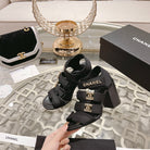 cc slingback sandal tripe strap 60 black canvas calfskin
