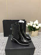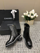 ROUND-TOE SHORT BOOTS BLACK SHEEPSKIN