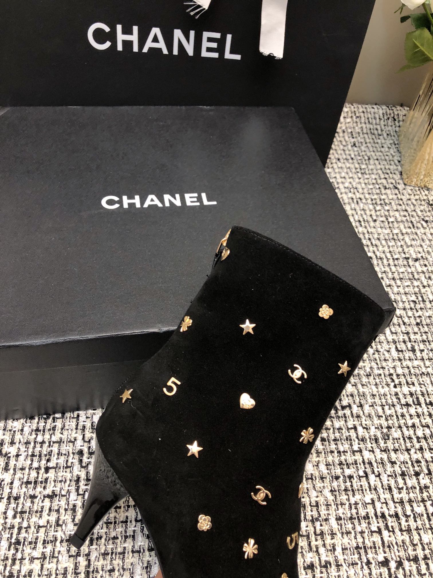 SHORT BOOTS BLACK SUEDE LAMBSKIN ATTACH METAL