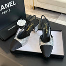 slingbacks 65 black calfskin grosgrain silver sequin