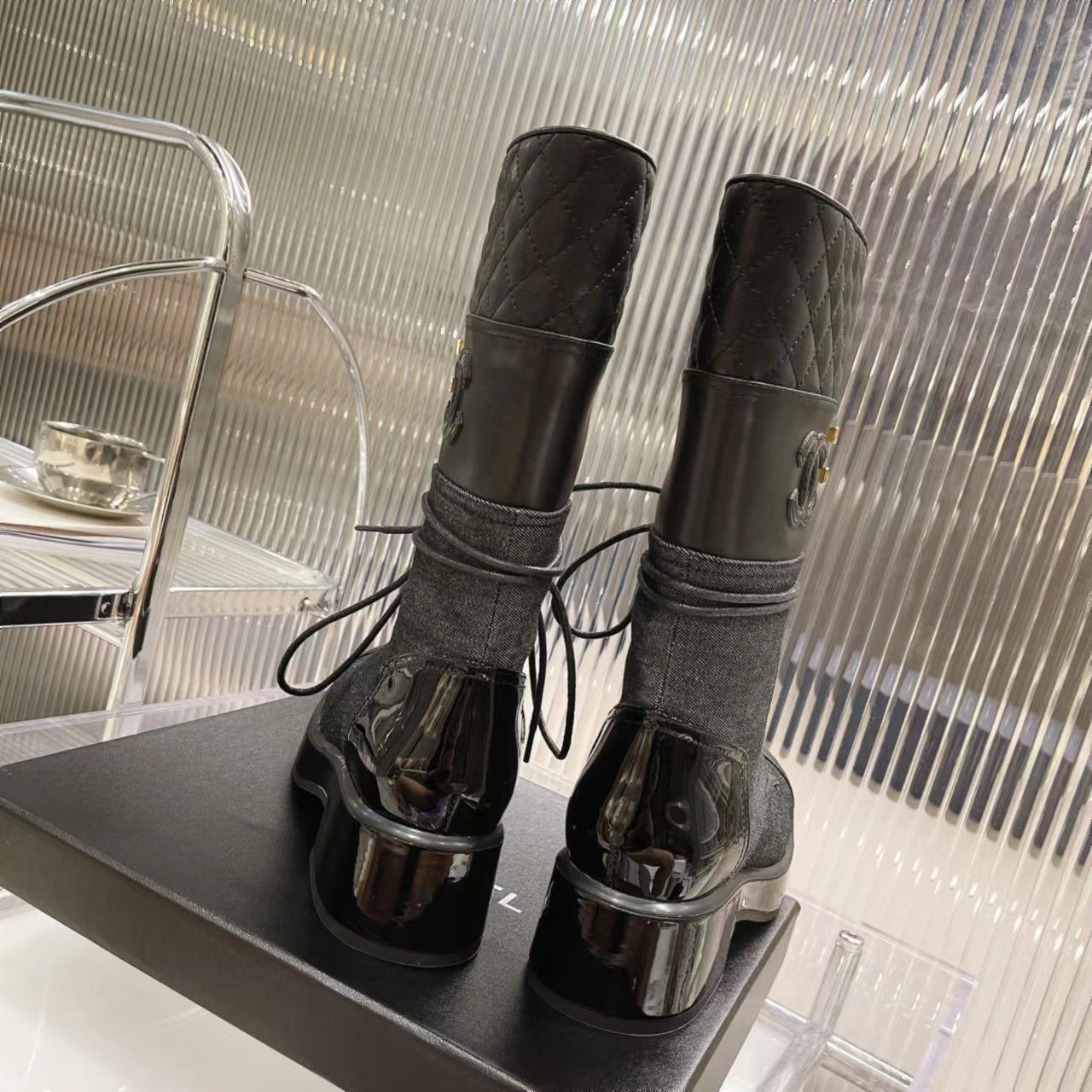 CC High Boots 45mm Black Denim Fabric And Quilted Cowhide