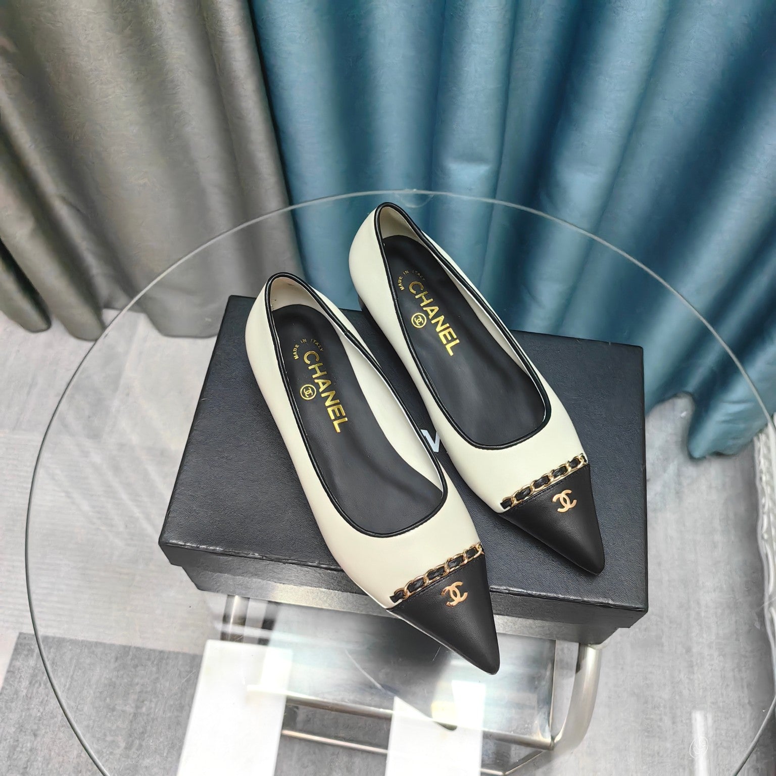 CC Ballet Flats White Chain Lambskin