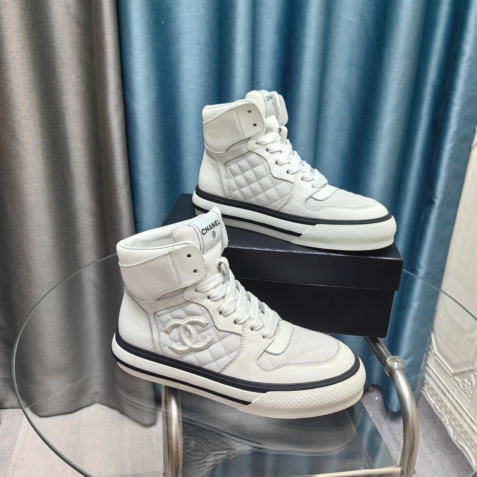 CC High Top Sneaker Thick-Soled White Rain Velvet Fabric