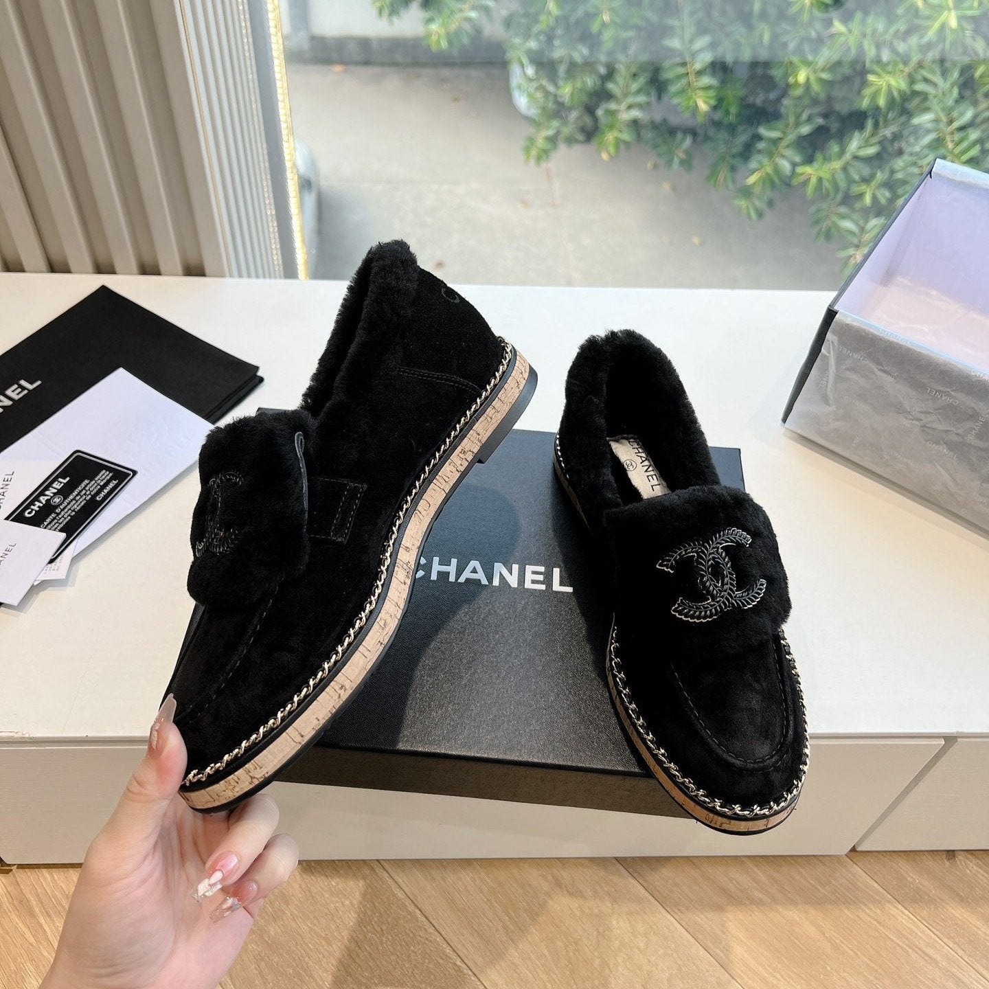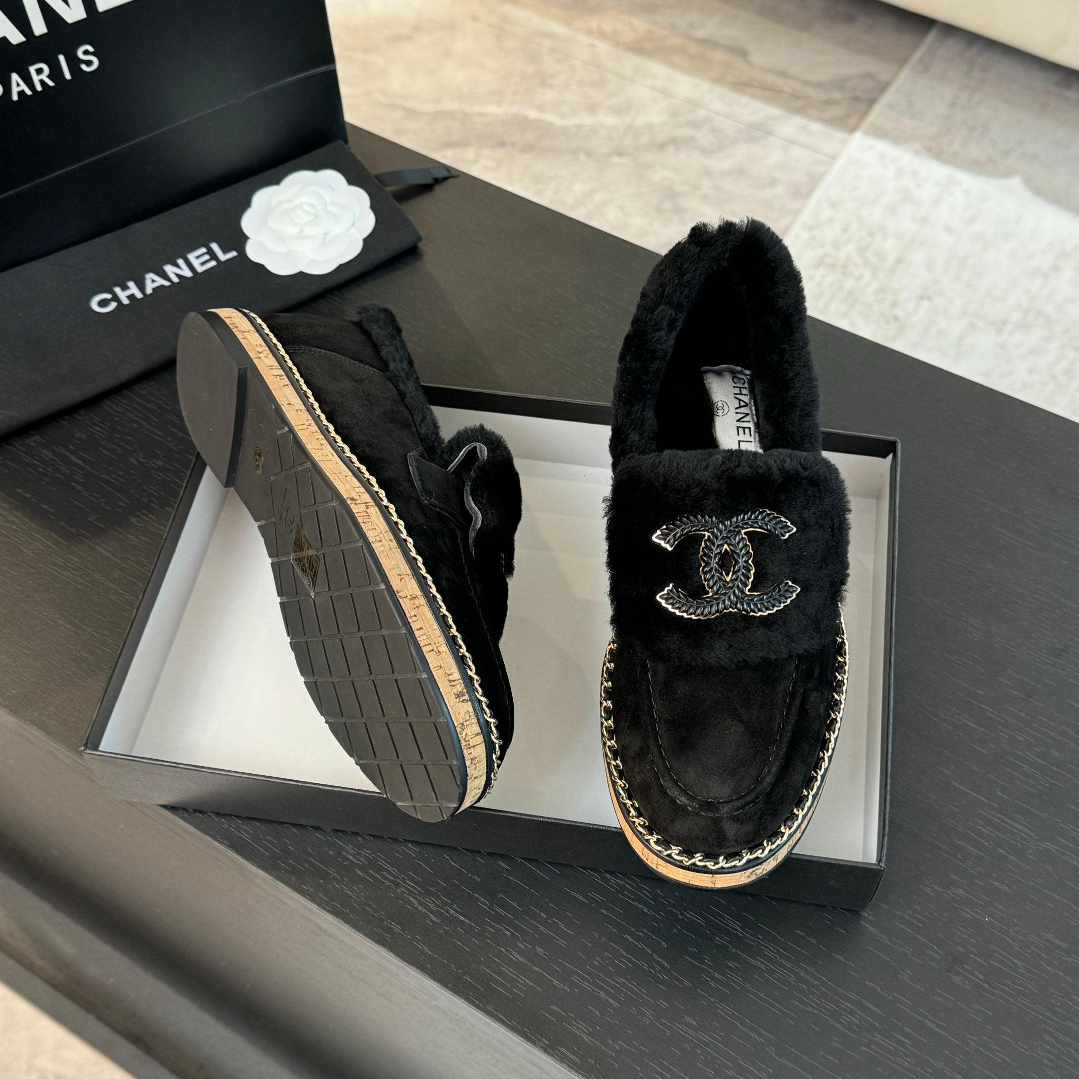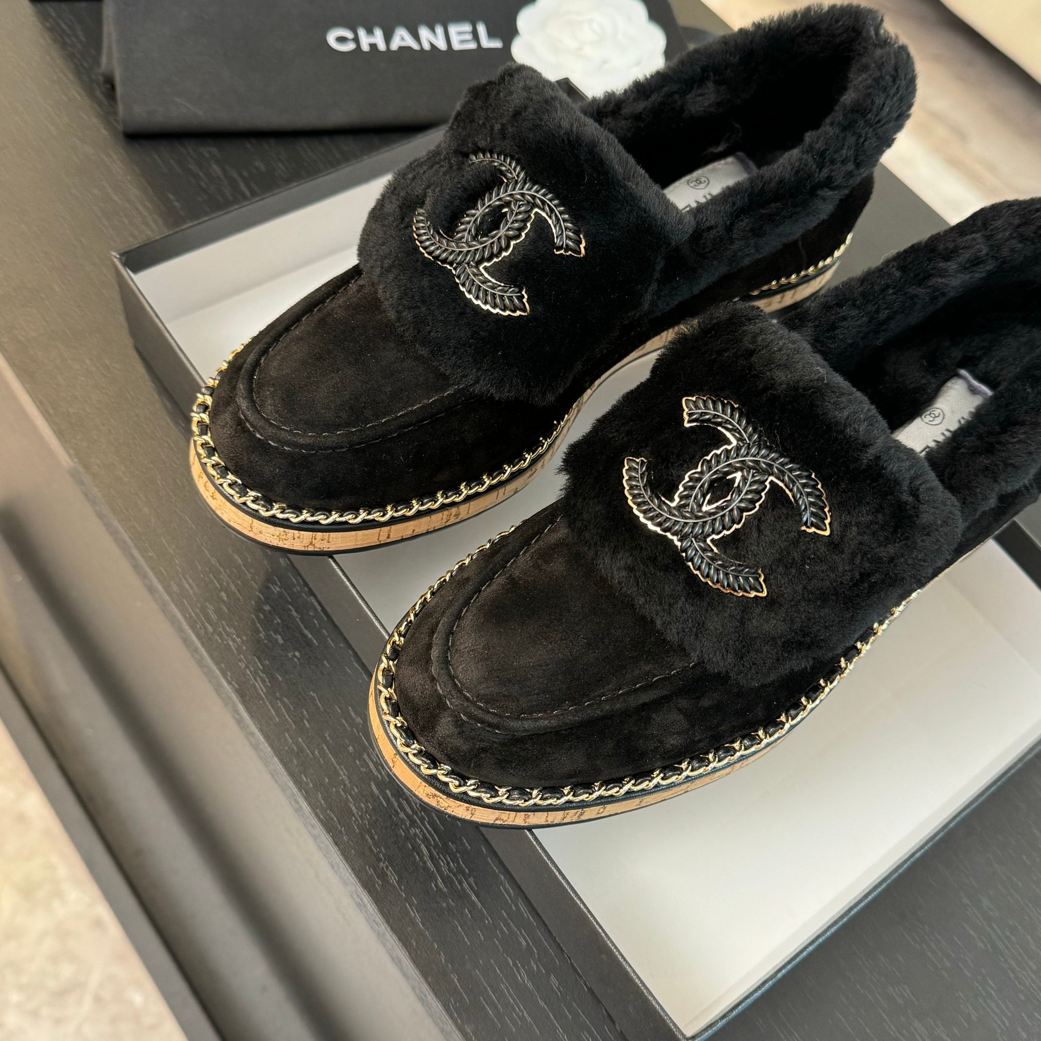 CC Moccasins 25mm Black Plain Lambskin