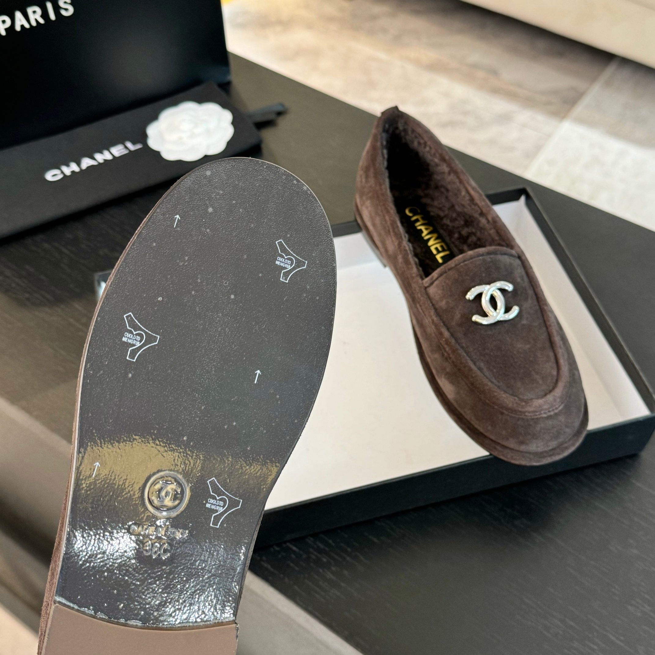 CC Moccasins Earth Brown Suede And Wool