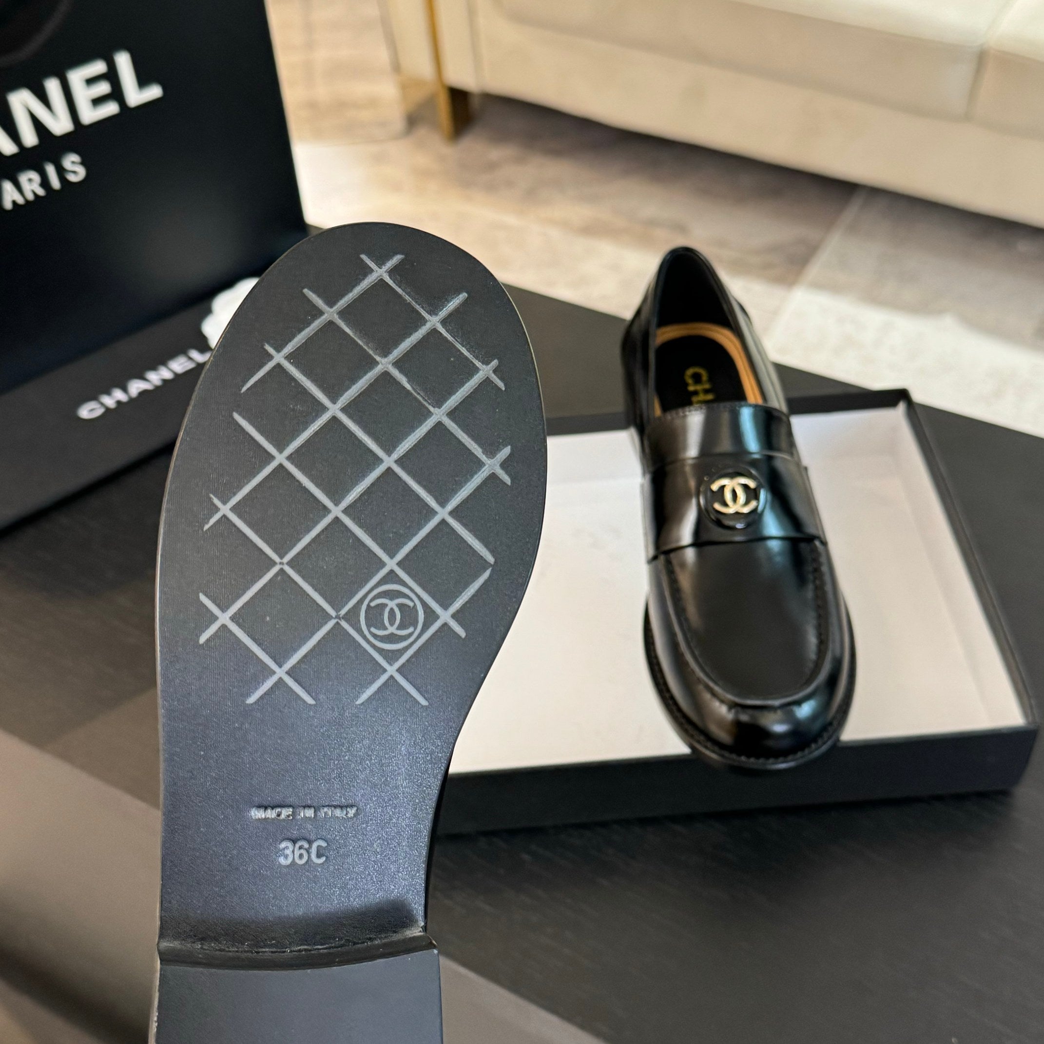 CC Moccasins Glossy Black Calfskin