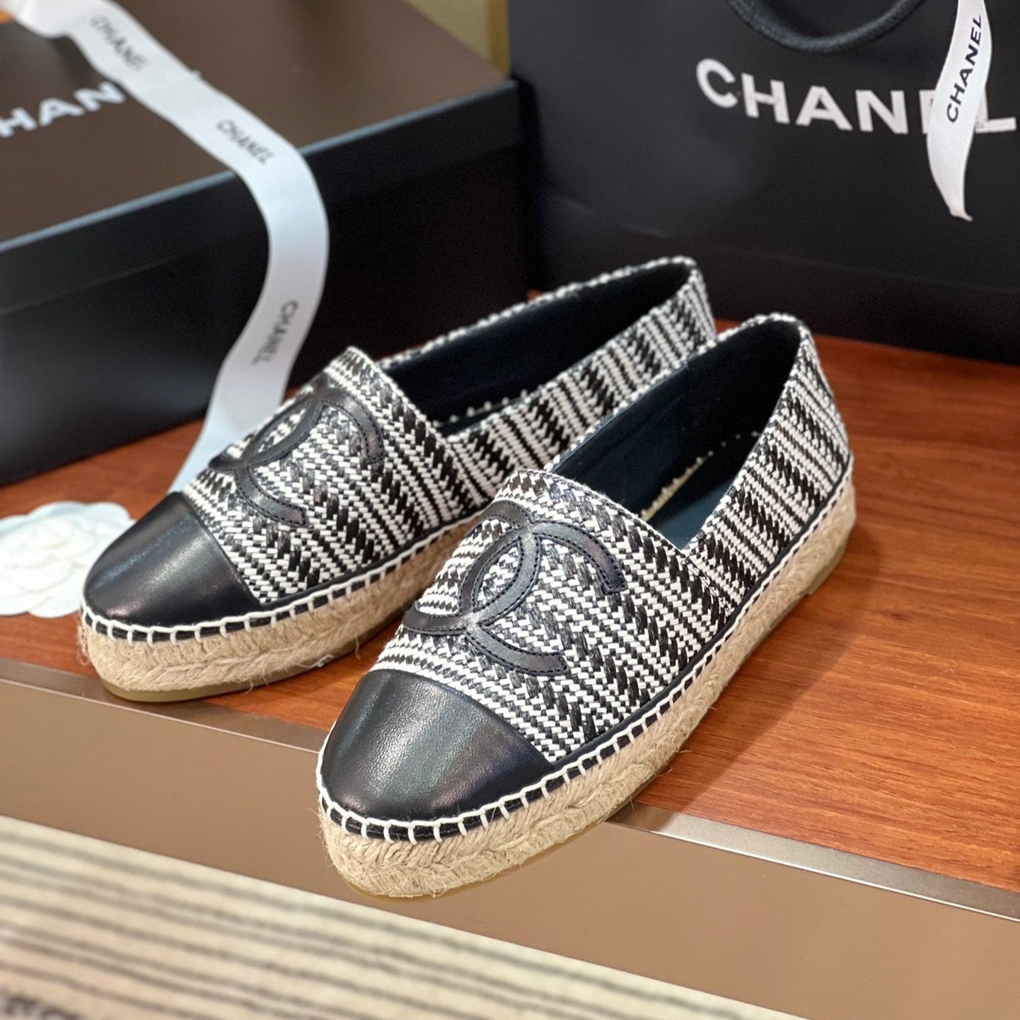 cc espadrilles beige black woolen cloth silver metalic lambskin