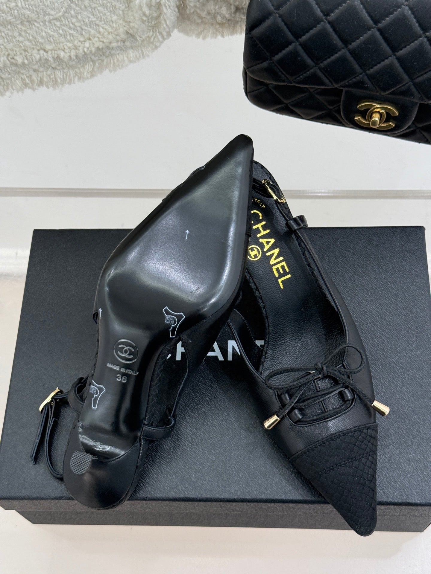 CC 25C Bowknot Slingback Sandal 60mm Black Sheepskin Black Grosgrain 265655