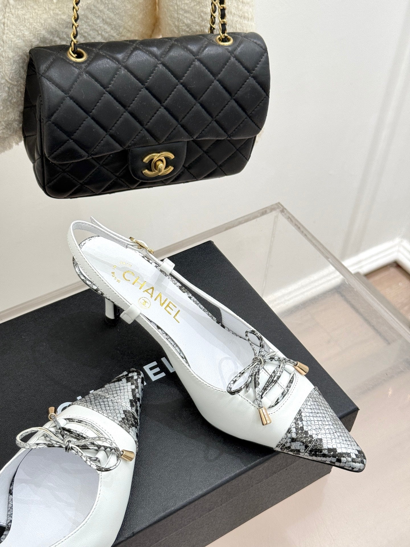 CC 25C Bowknot Slingback Sandal 60mm White Sheepskin Mix Python Pattern 265652