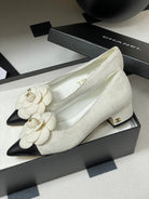 CC 25C Classic Camellia Pointed High Heels Pump 35mm White Suede 247613