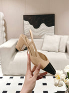 cc 25c slingback 55mm cross line pattern beige lambskin 237495