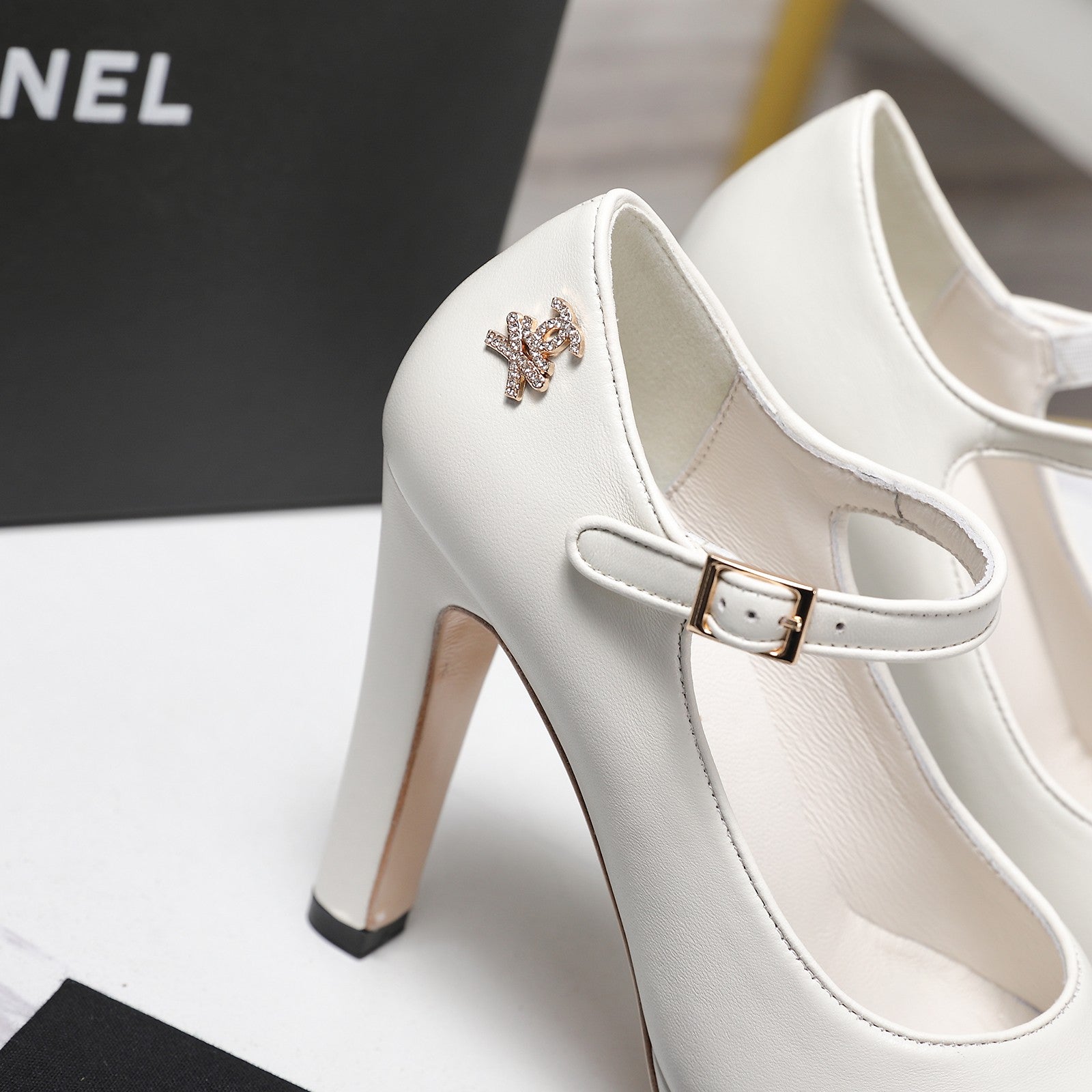CC Buckle Platform Pumps 100mm White Lambskin 425879
