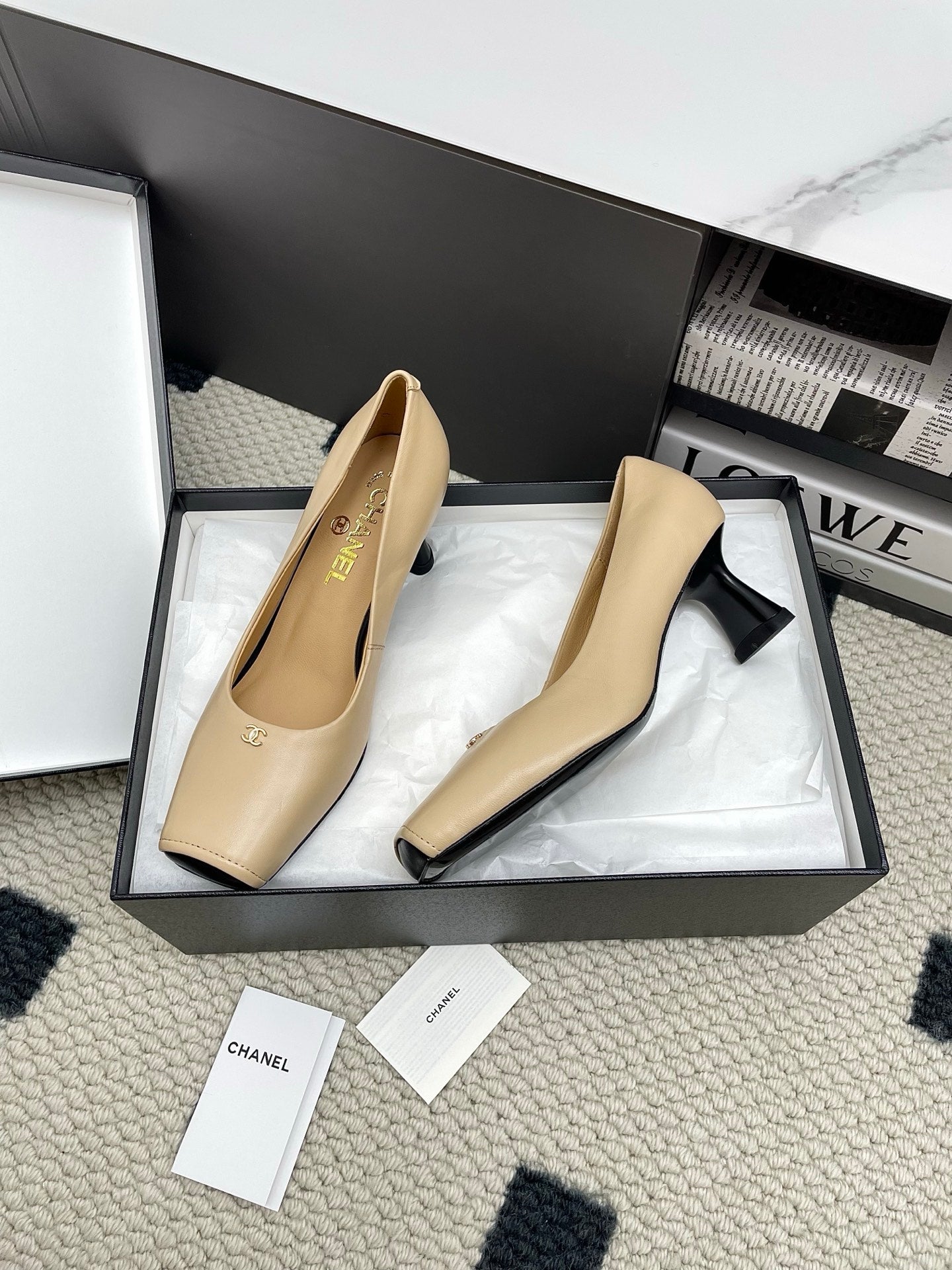 CC Square-Toe Pumps 65mm Beige Sheepskin 427014