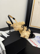 cc25 slingback sandal ̣90mm bow black grosgrain gold canvas 233594