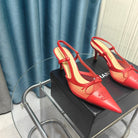 Slingback 50 Red Mesh Calfskin Pointed Toe