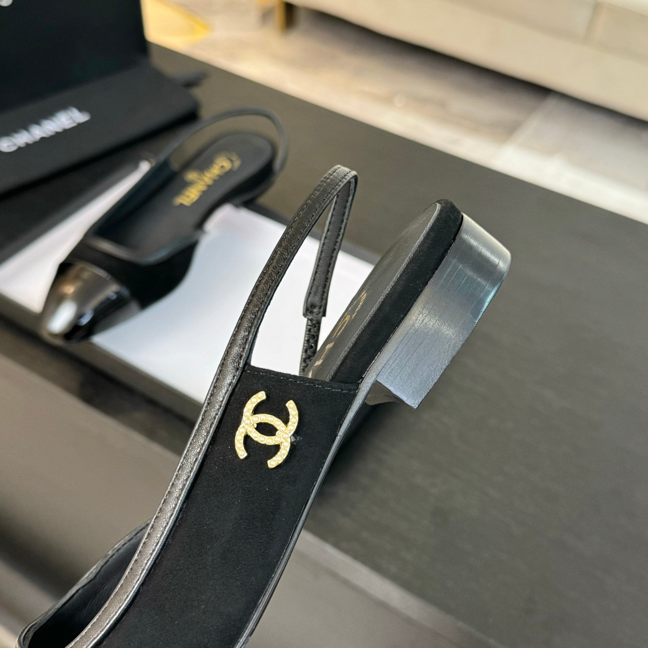 CC 25S Slingback 85mm Black Suede Grosgrain
