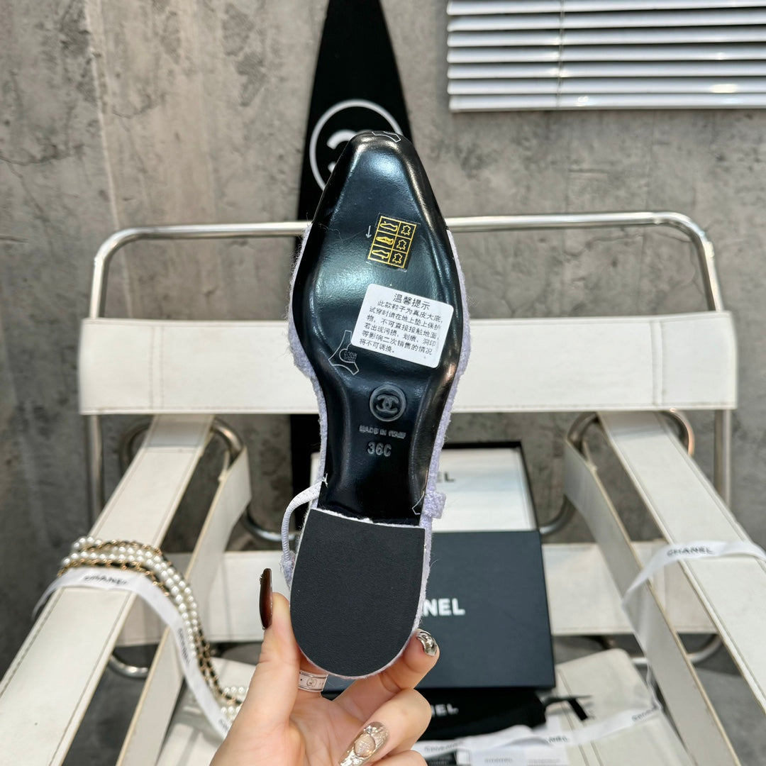 slingbacks flat light violet tweed black patent calfskin