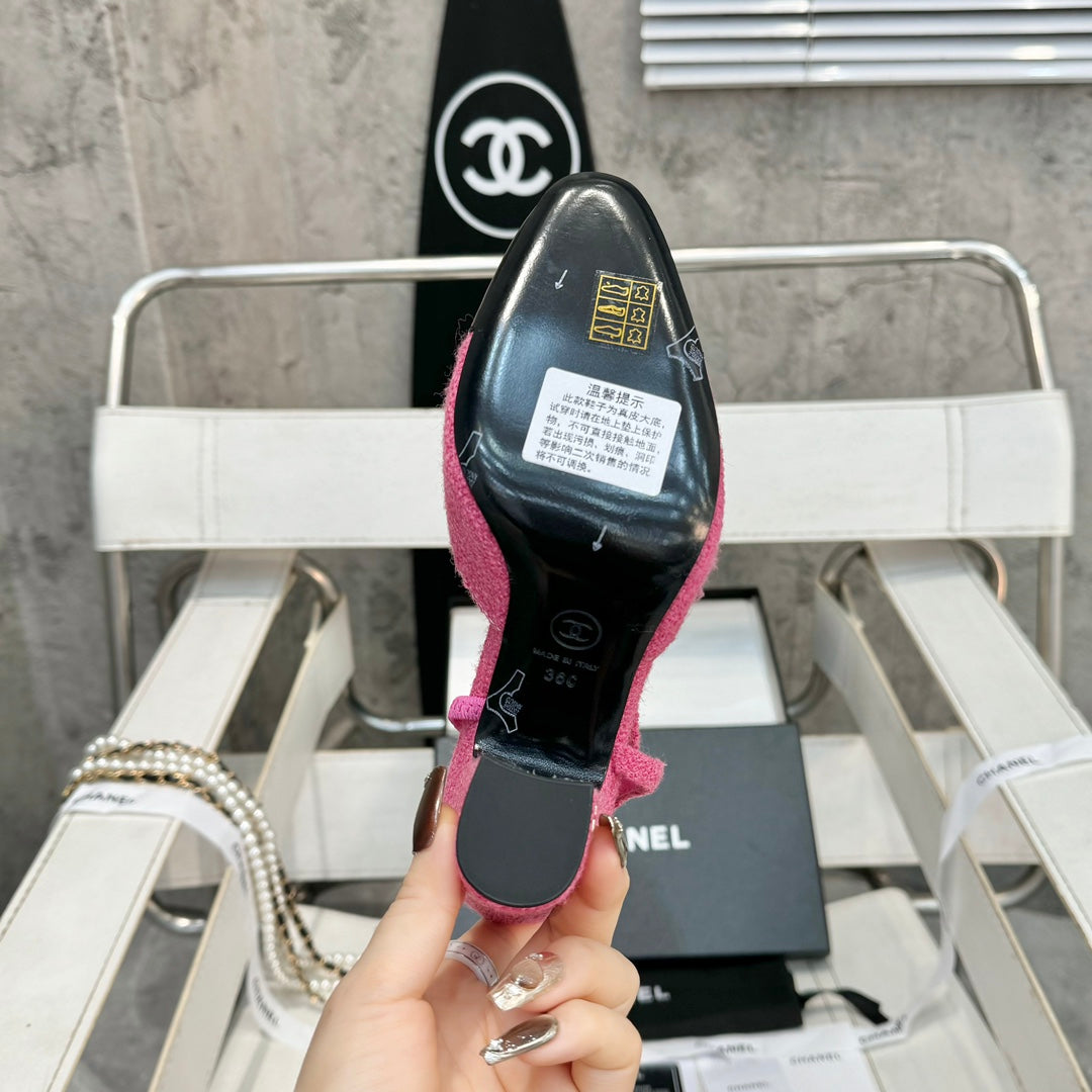 slingbacks 95 pink tweed black patent calfskin