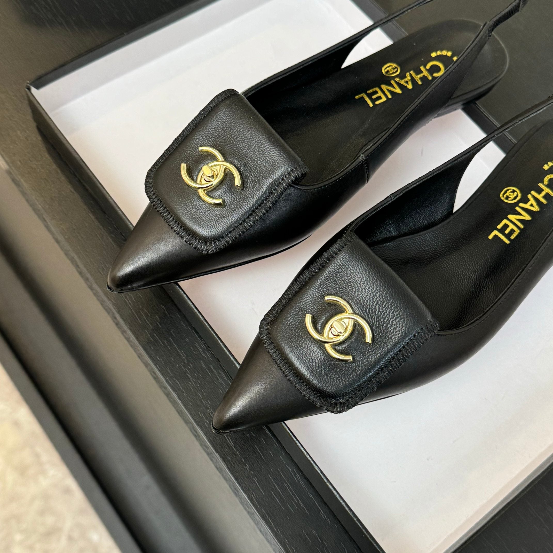 CC 25C 5CM Slingback Flats Black Leather 213242