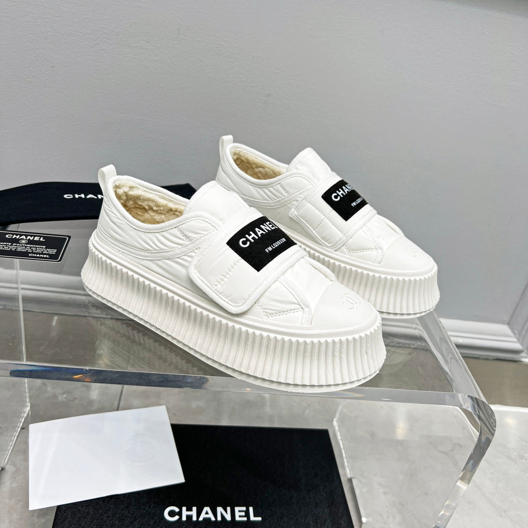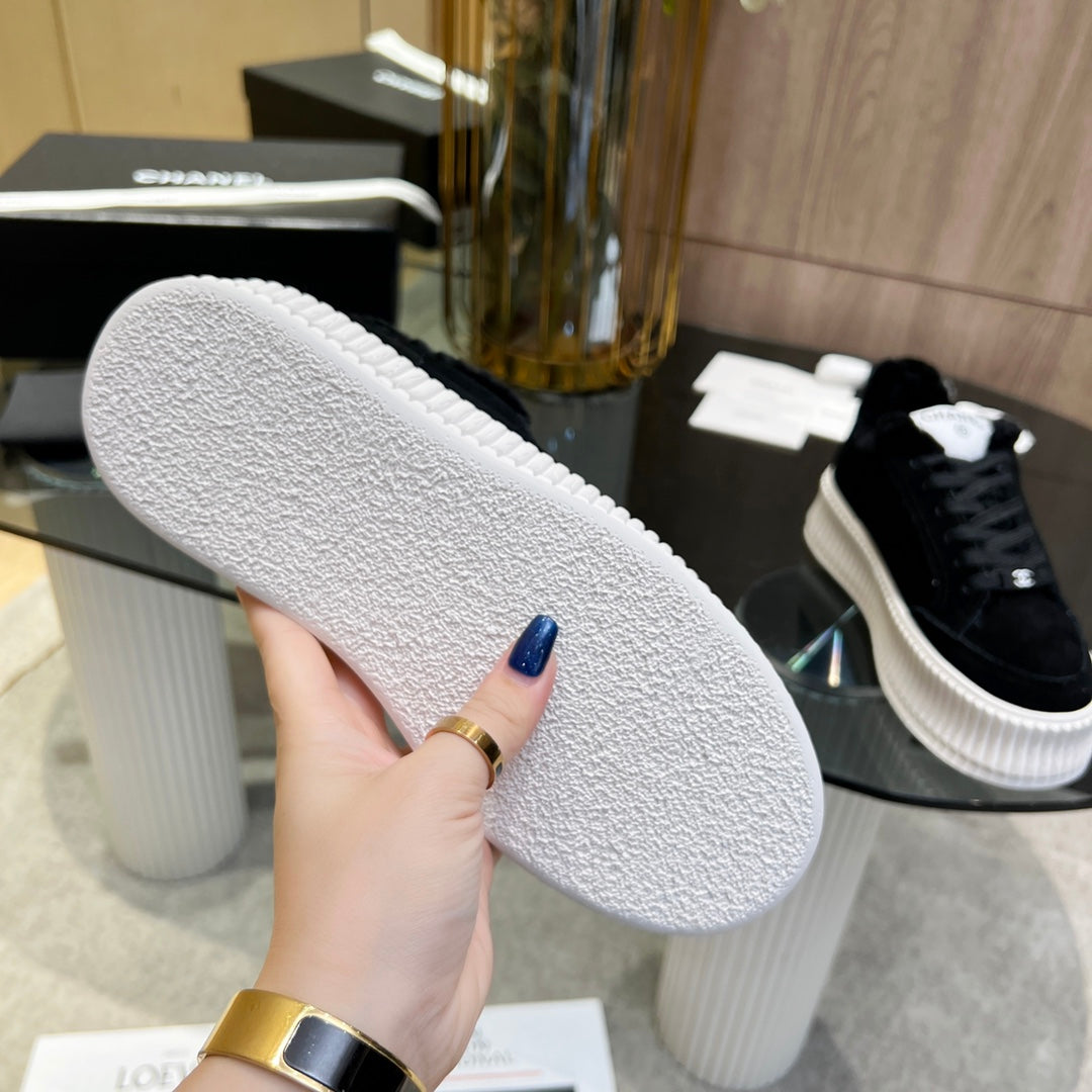 CC Sneaker Thick-Soled White Suede Wool Lining Fleece