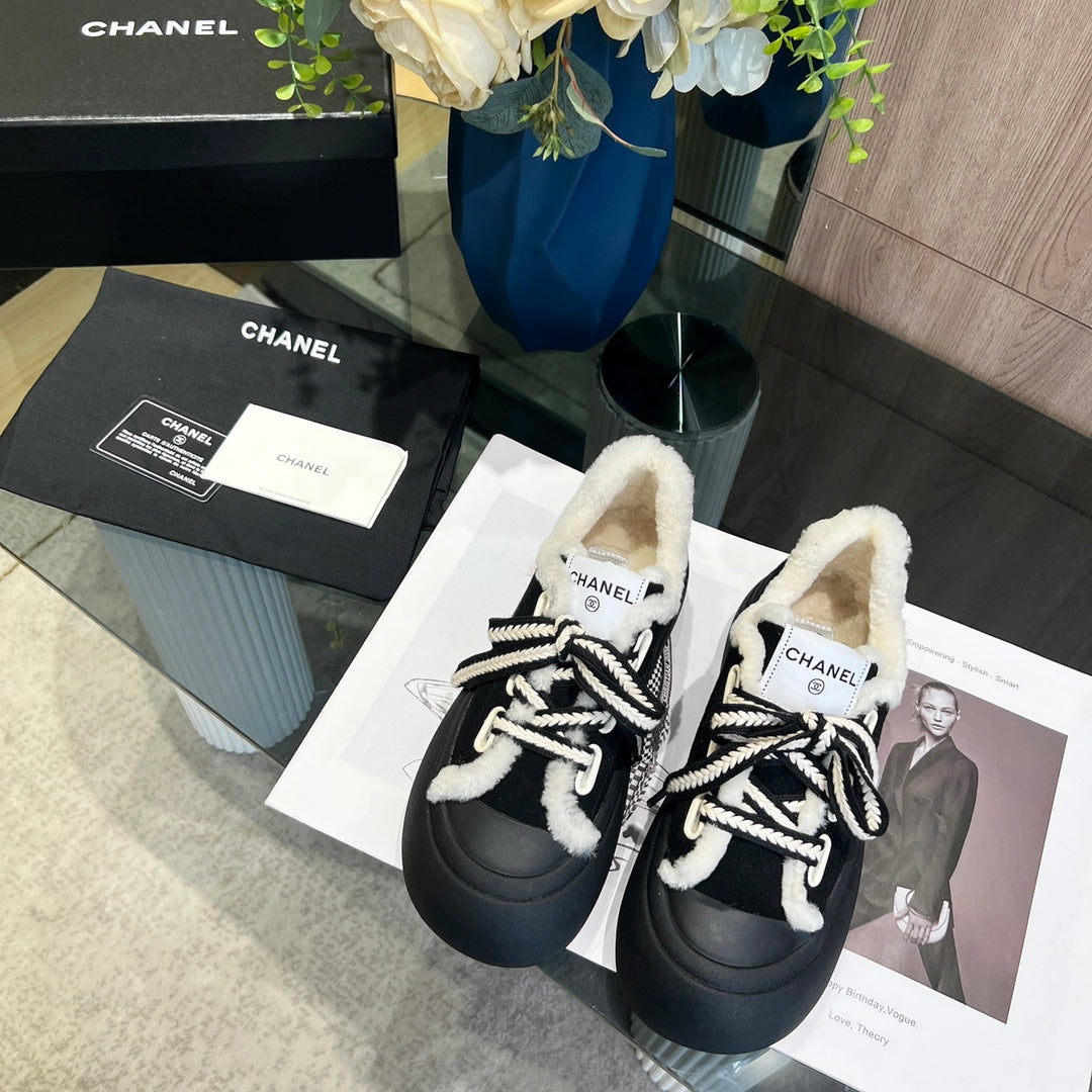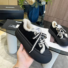 CC Sneaker Thick-Soled Black Suede Wool Lining Fleece